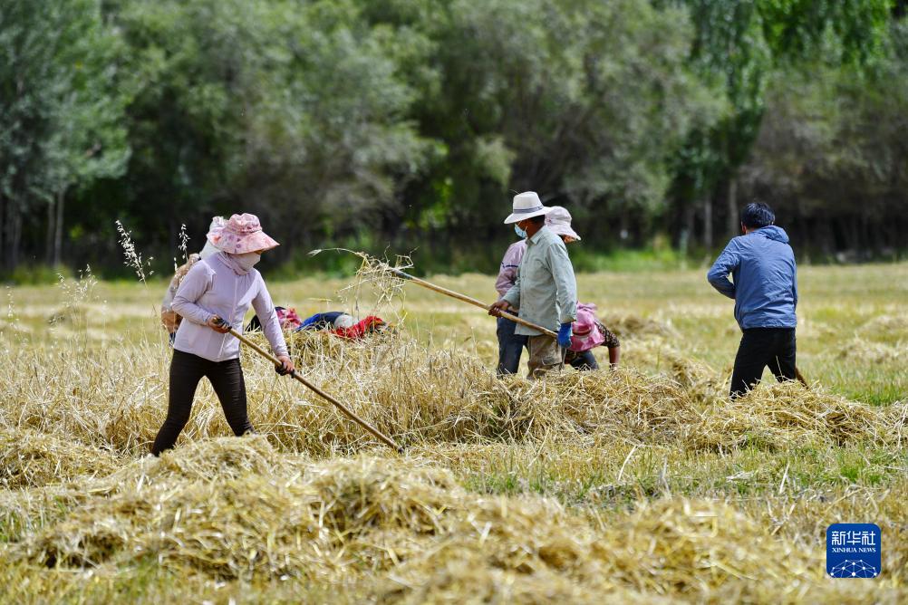 近日,西藏拉薩市曲水縣青稞成熟,人們忙着收割青稞,感受豐收的喜悅。