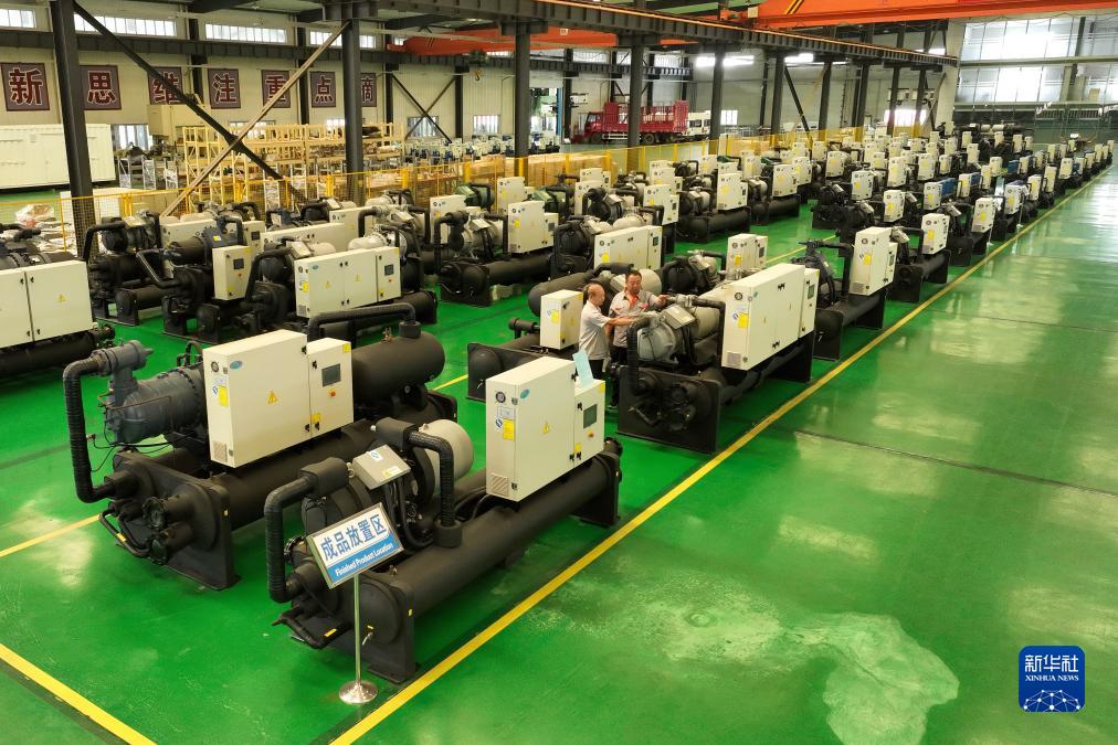 9月12日,工作人員在位於滄州市的河北益民五金製造股份有限公司成品區對地源熱泵機組進行出廠前全面核對。