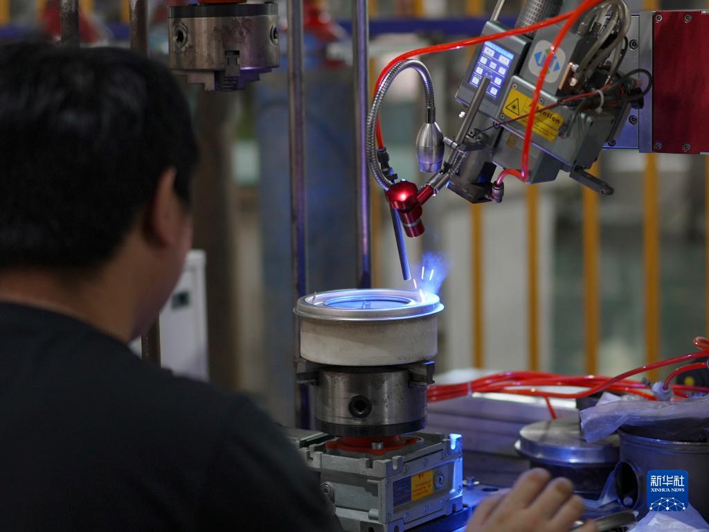 9月12日,工作人員在河北滄州立德機電有限公司生産車間進行激光焊接。