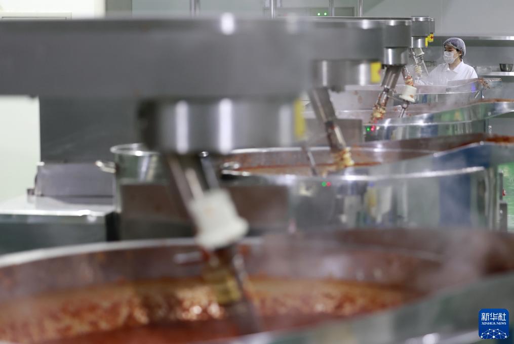 9月12日,唐山市豐南區一辣椒加工企業的工人在辣椒醬生産車間工作。