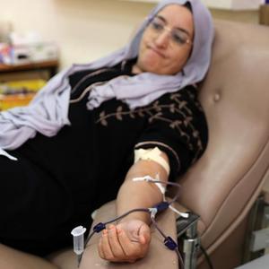 9月12日,在摩洛哥馬拉喀什一家血液捐獻中心,民眾排隊獻血。