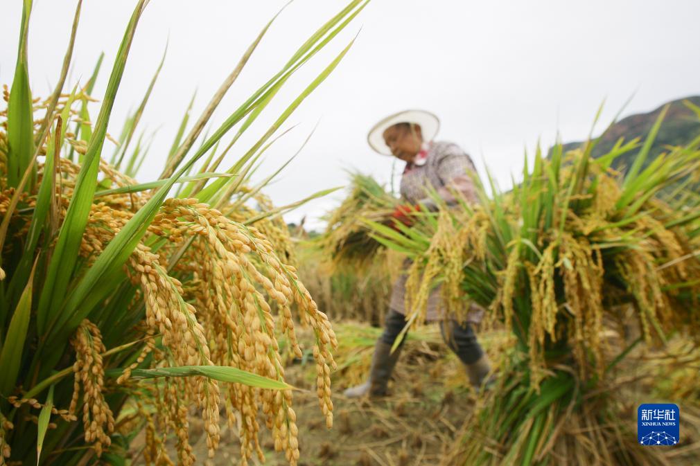 9月12日,雲南省曲靖市沾益區德澤鄉,農民在田間收割水稻。