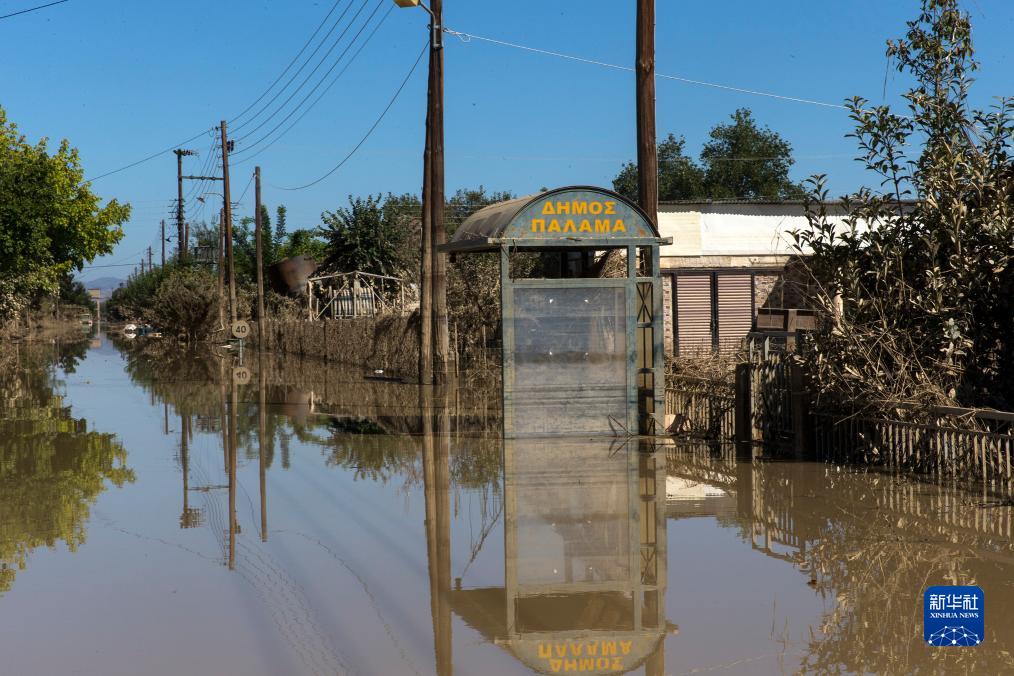 9月12日,希臘中部卡爾季察地區的一處村莊道路淹沒在水中。