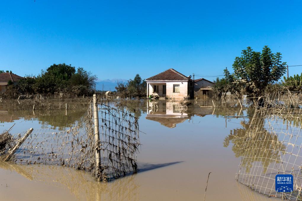 9月12日,希臘中部卡爾季察地區的一處村莊的房屋淹沒在水中。