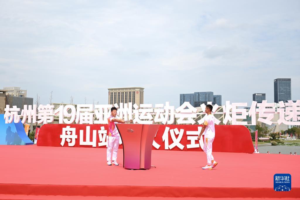 當日,杭州亞運會火炬在浙江省舟山傳遞。