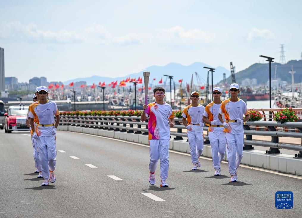 當日,杭州亞運會火炬在浙江省舟山傳遞。