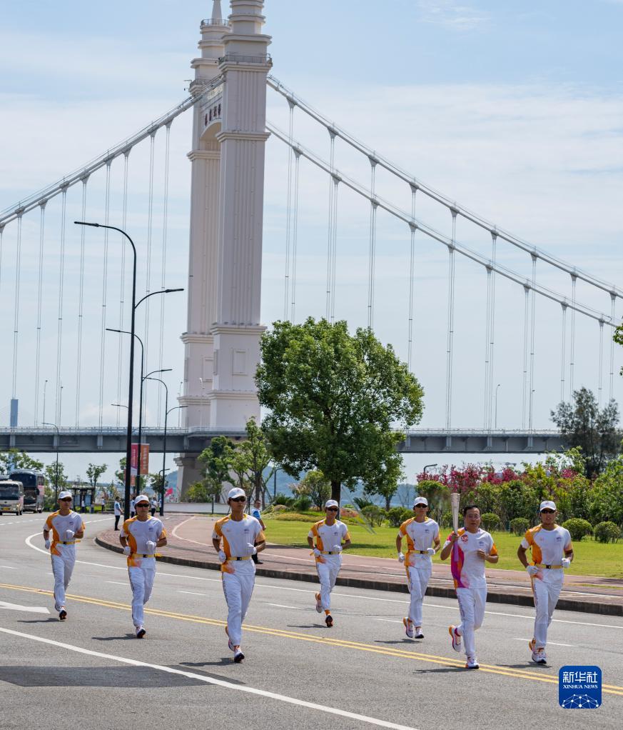 當日,杭州亞運會火炬在浙江省舟山傳遞。