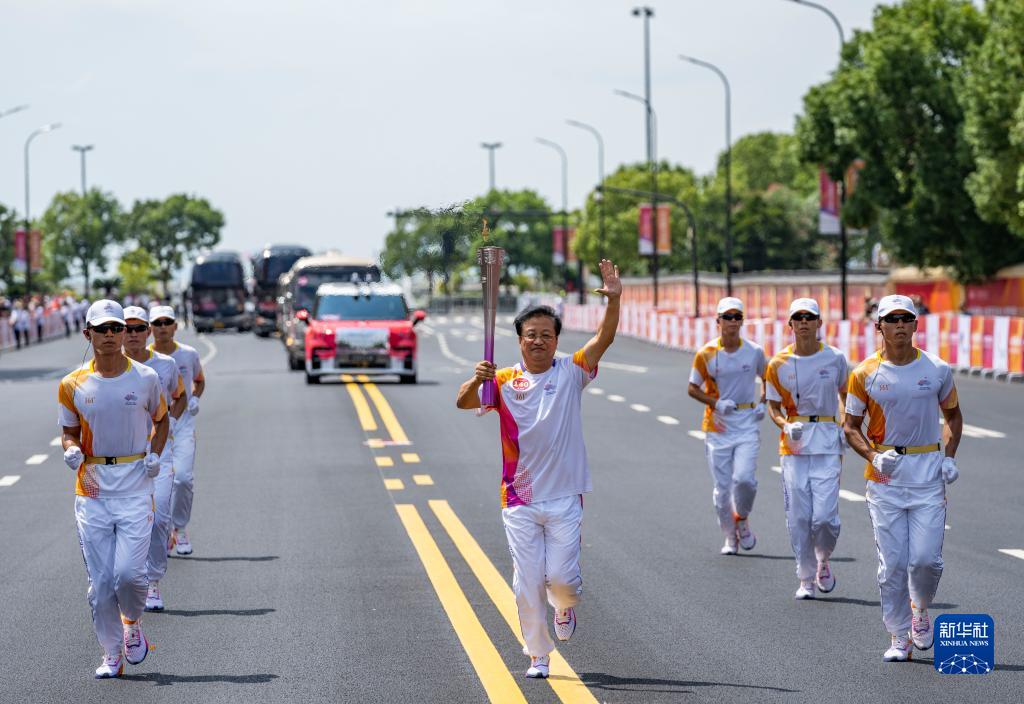 當日,杭州亞運會火炬在浙江省舟山傳遞。