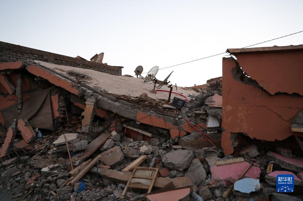 9月12日,在震中區域的摩洛哥豪茲省塔拉特恩雅庫布村,記者拍攝到大量被地震損毀建築。