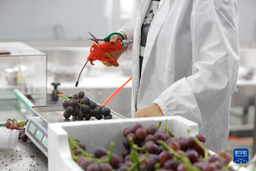 9月12日,句容市丁莊村葡萄合作聯社分揀中心的工作人員將葡萄整理打包。