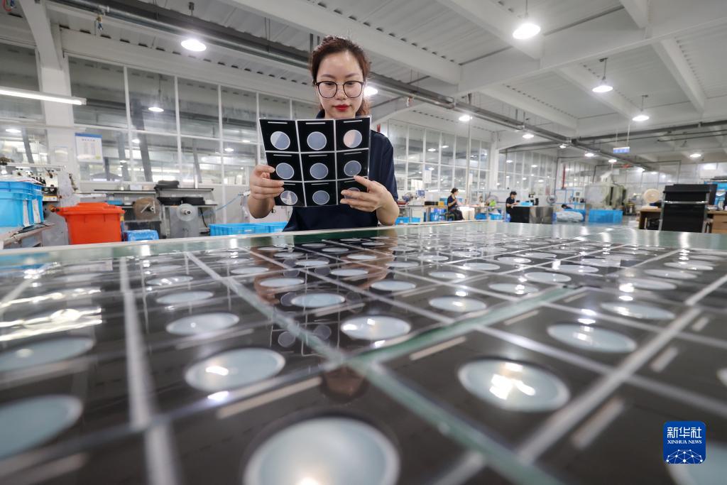 9月13日,德清縣禹越鎮一家電子生産企業的工人在檢測安防裝飾板訂單産品。