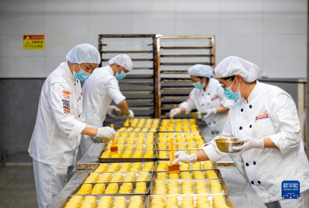 中秋節臨近,月餅迎來消費旺季,不少月餅生産企業抓緊加工製作月餅,滿足市場需求。