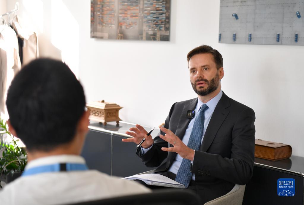 9月12日,在瑞士日內瓦世界貿易組織總部,世貿組織首席經濟學家拉爾夫·奧薩接受新華社記者採訪。