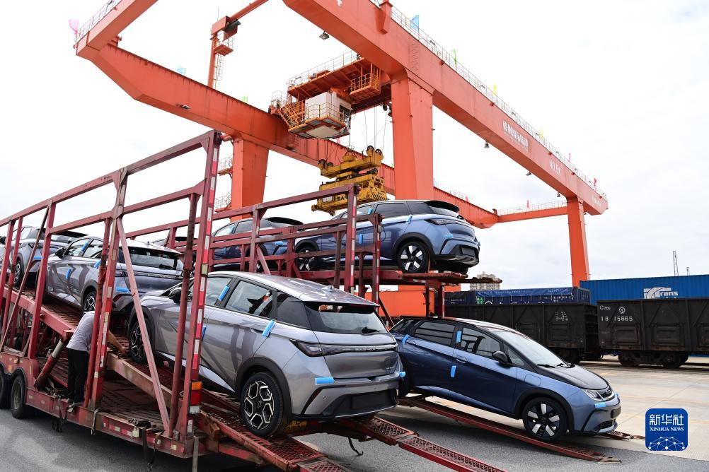 當日,一列滿載150輛新能源汽車專列由江西贛州國際陸港駛向深圳鹽田港。該趟專列將通過鐵海聯運方式,在深圳鹽田港裝船出海,發運至荷蘭鹿特丹港。這一多式聯運通道的順利開通,將助力中國汽車加速“出海”。