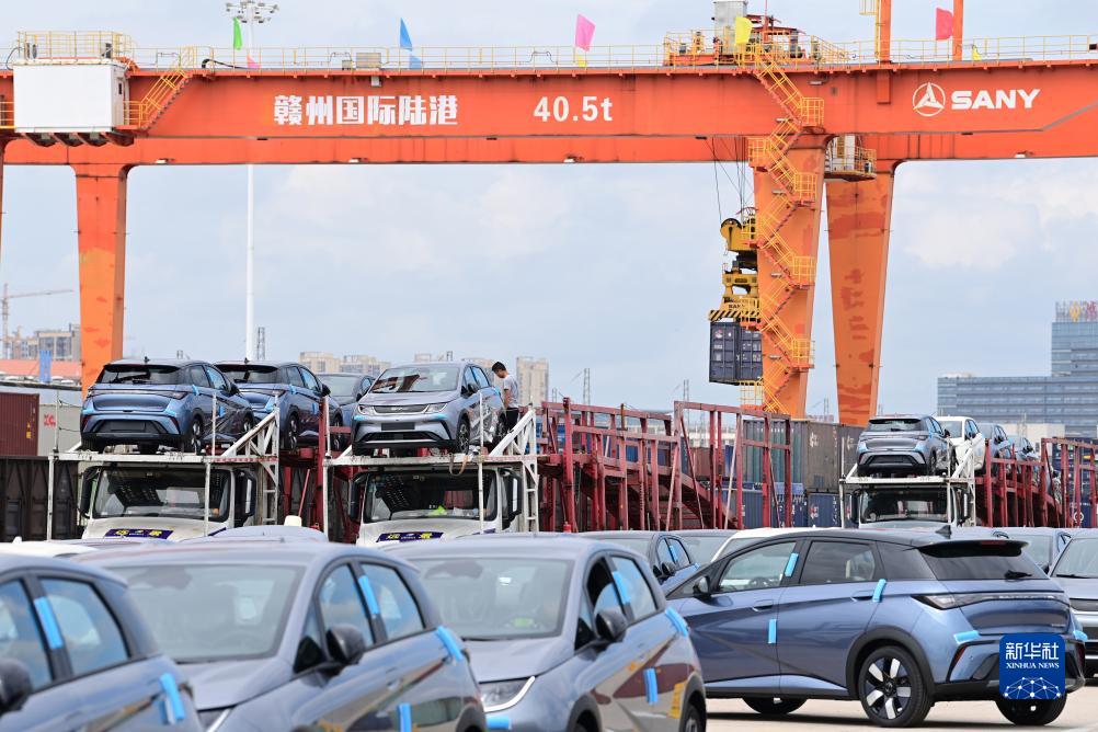當日,一列滿載150輛新能源汽車專列由江西贛州國際陸港駛向深圳鹽田港。該趟專列將通過鐵海聯運方式,在深圳鹽田港裝船出海,發運至荷蘭鹿特丹港。這一多式聯運通道的順利開通,將助力中國汽車加速“出海”。
