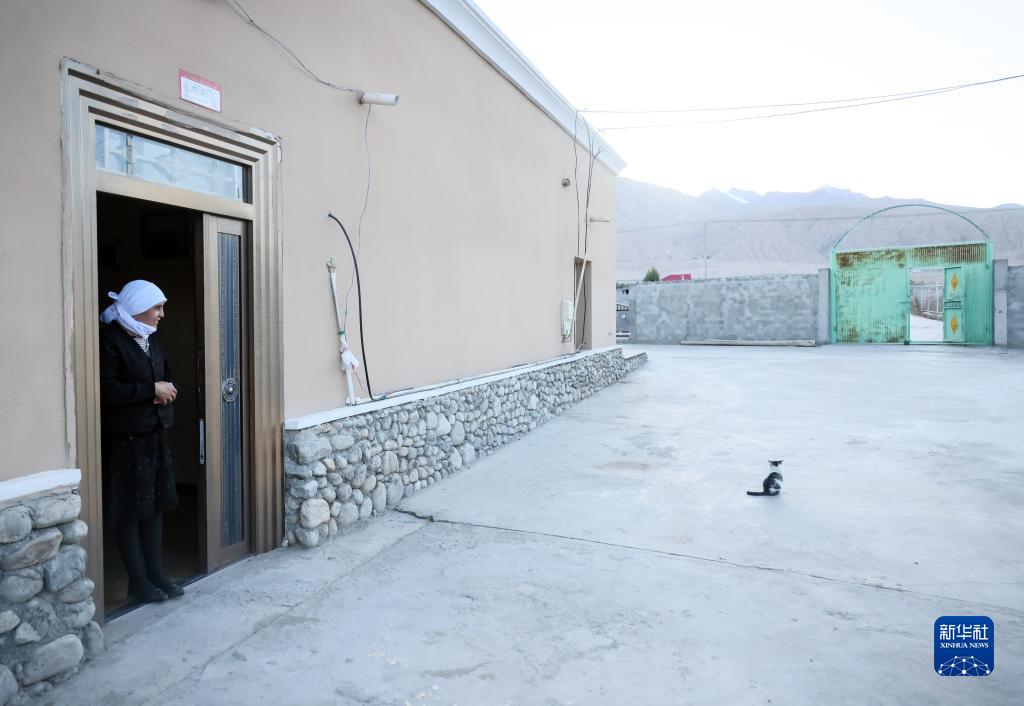 9月5日,拉齊尼的妻子阿米娜·阿力甫夏站在家門口。新華社記者 蘭紅光 攝