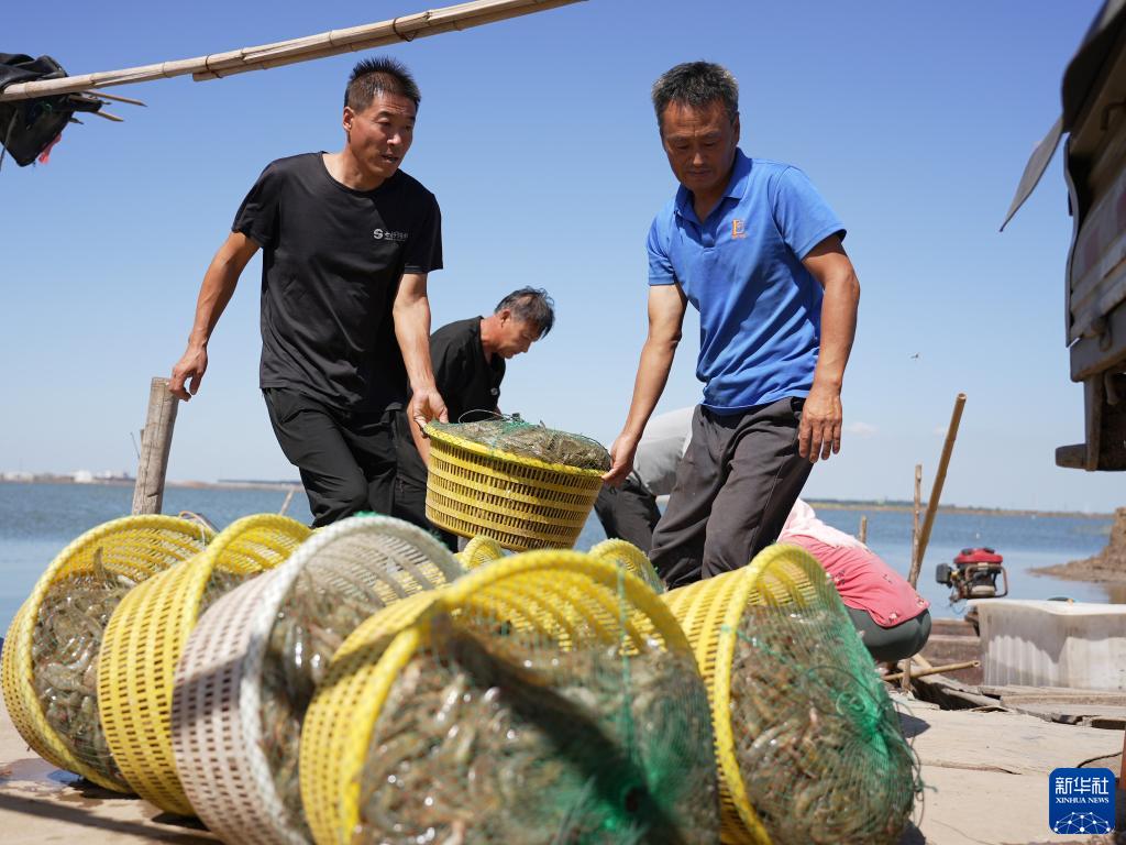 金秋時節,在河北省滄州市海興縣鹽鹼灘塗養殖池,養殖戶正忙着捕撈對蝦,一派繁忙景象。海興縣地處渤海之濱,土地鹽鹼化嚴重,種植效益差。近年來,當地依託鹽鹼灘塗搞起了特色水産規模化養殖,打造“藍色糧倉”,目前已成為海興縣主導産業之一。
