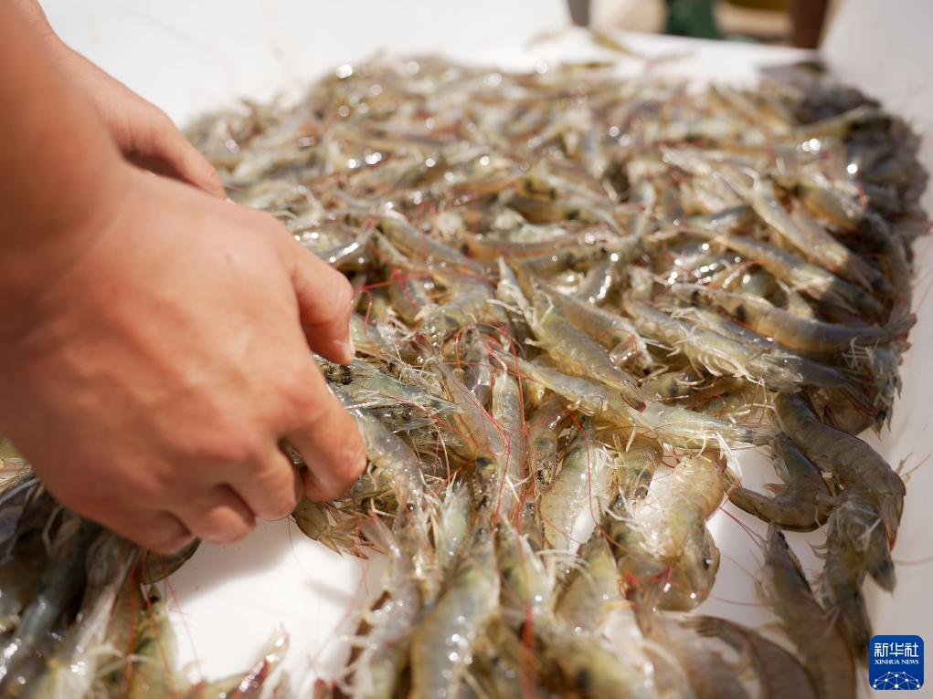 金秋時節,在河北省滄州市海興縣鹽鹼灘塗養殖池,養殖戶正忙着捕撈對蝦,一派繁忙景象。海興縣地處渤海之濱,土地鹽鹼化嚴重,種植效益差。近年來,當地依託鹽鹼灘塗搞起了特色水産規模化養殖,打造“藍色糧倉”,目前已成為海興縣主導産業之一。