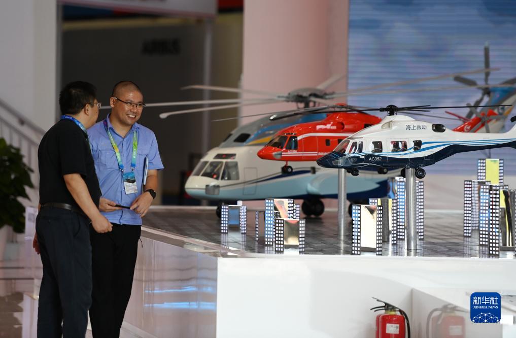 9月13日,參展人員在第六屆中國天津國際直升機博覽會會場交流。