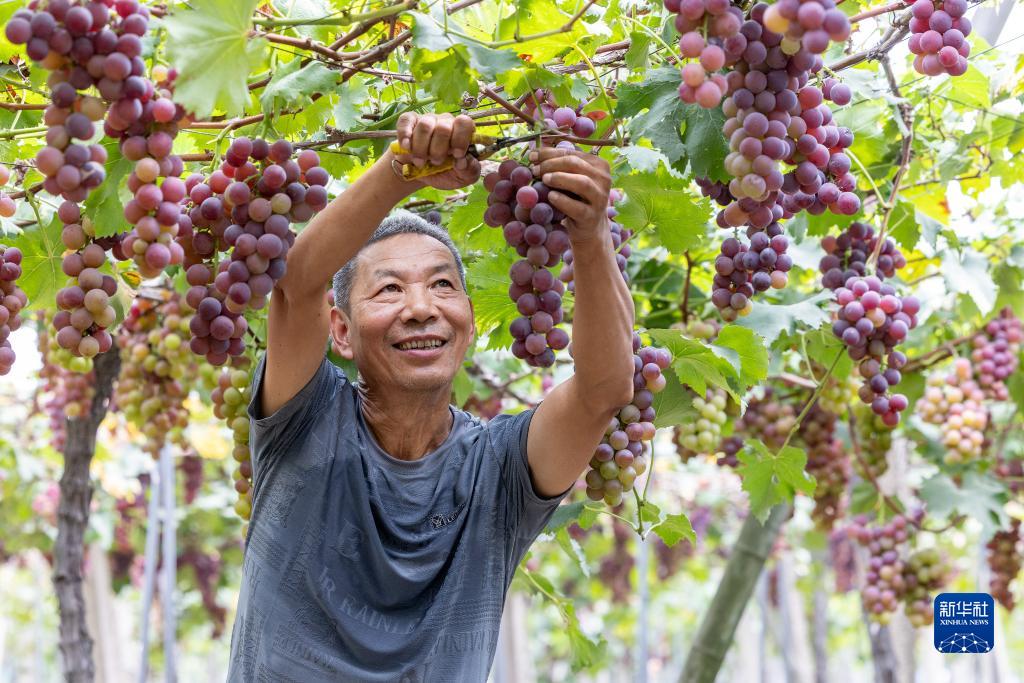 近年來,浙江省諸暨市制定了促進葡萄産業持續健康發展的相關政策,堅持“大園區小業主”生産模式,引進新品種、智慧灌溉等,有序推進産業提檔升級。目前,諸暨市年産葡萄1.2萬噸,積極打造集觀光、採摘、旅游於一體的生態休閒農業,助力果農增收。