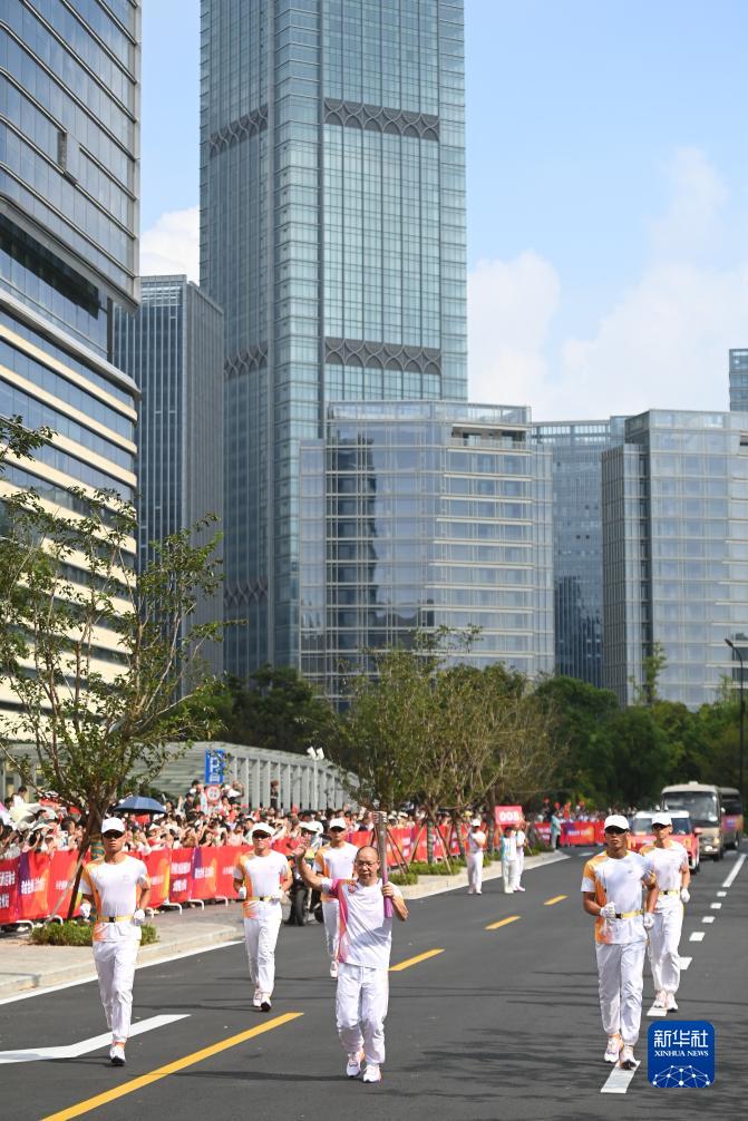 當日,杭州亞運會火炬在浙江省台州傳遞。