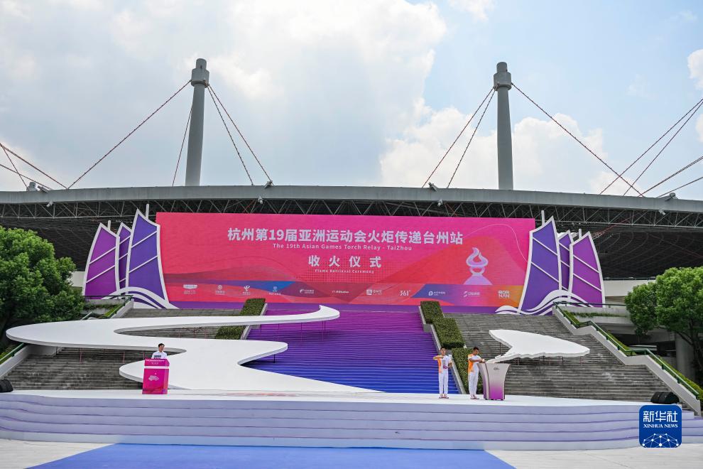 這是杭州亞運會火炬傳遞台州站收火儀式現場(9月14日攝)。