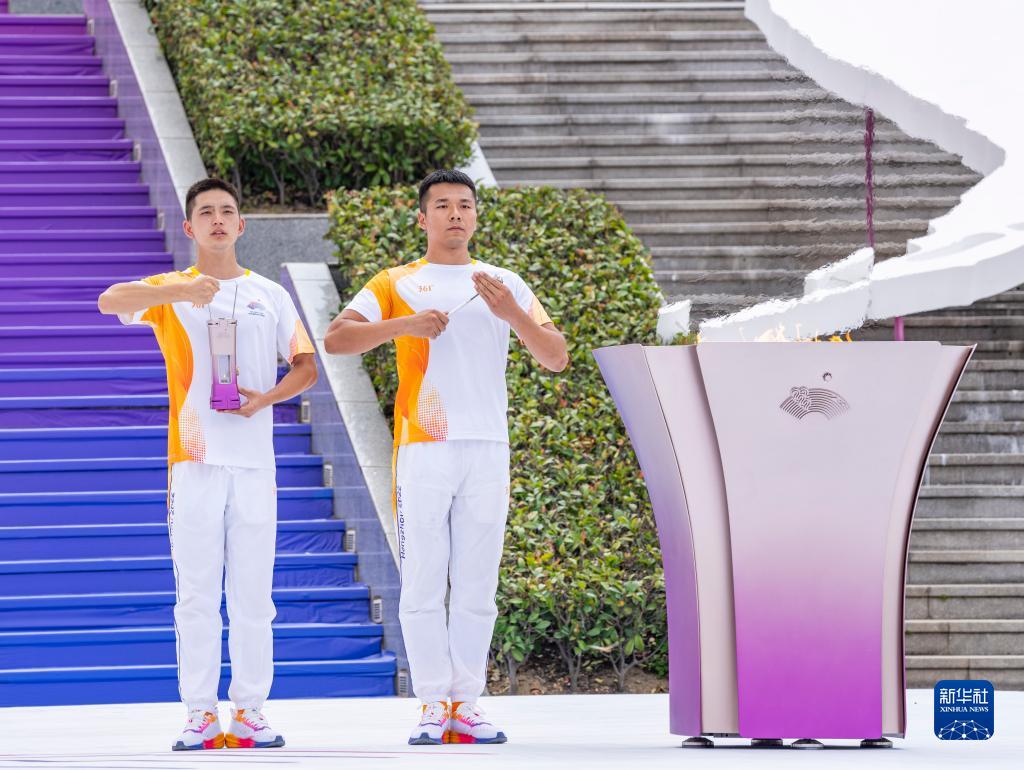 這是杭州亞運會火炬傳遞台州站收火儀式現場(9月14日攝)。