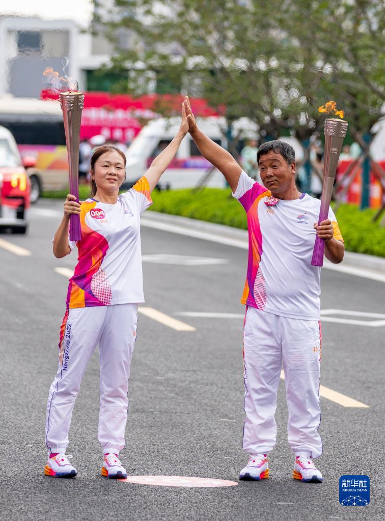 當日,杭州亞運會火炬在浙江省台州傳遞。