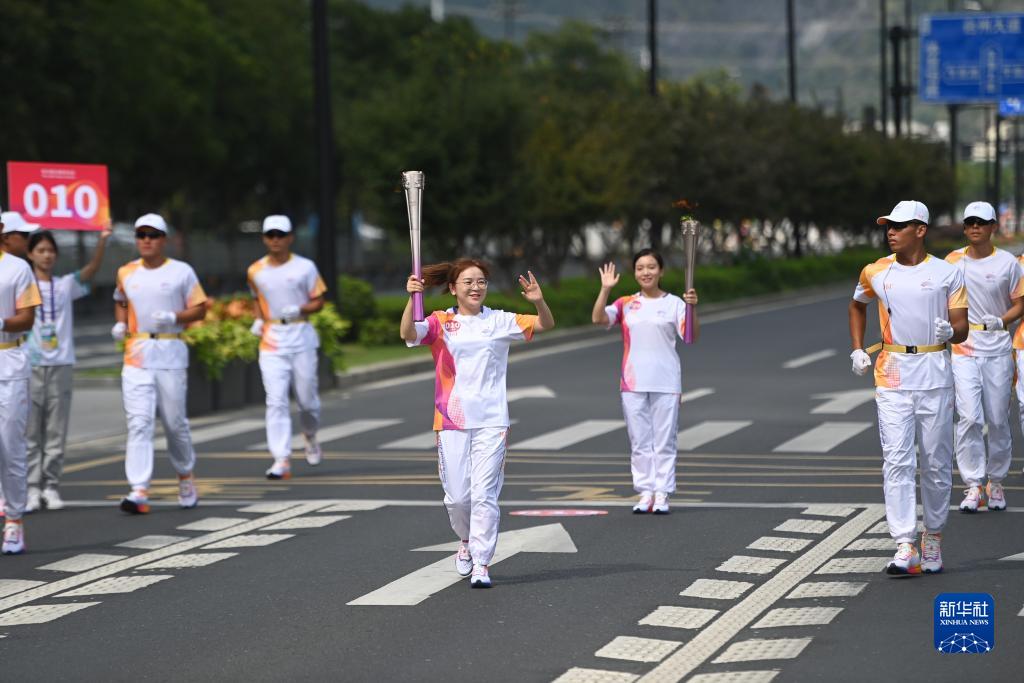 當日,杭州亞運會火炬在浙江省台州傳遞。