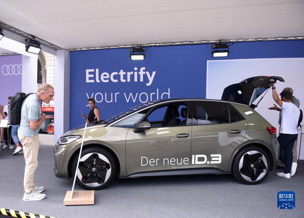 9月13日,觀眾在奧地利維也納電動汽車日活動現場參觀一輛大眾電動車。
