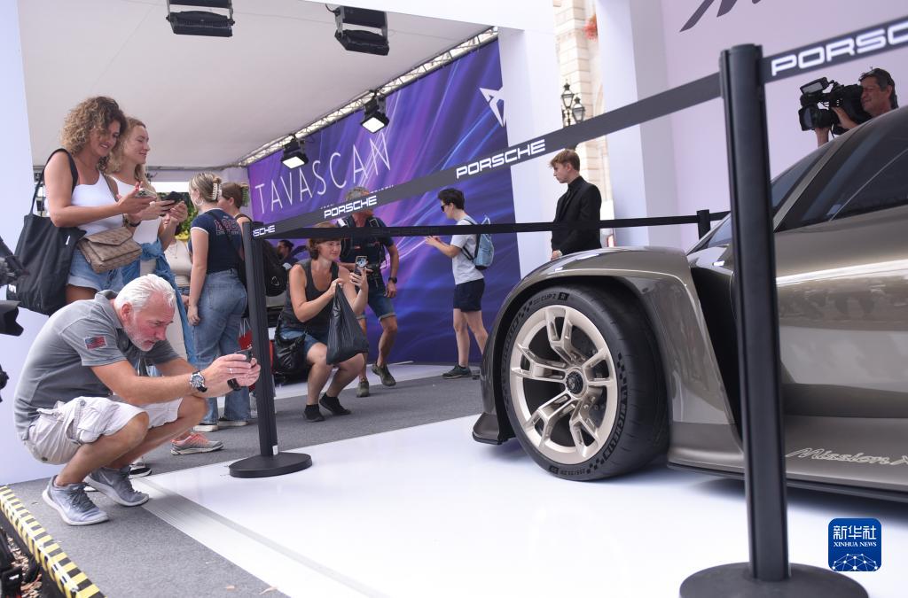 9月13日,觀眾在奧地利維也納電動汽車日活動現場拍攝一輛保時捷電動車。