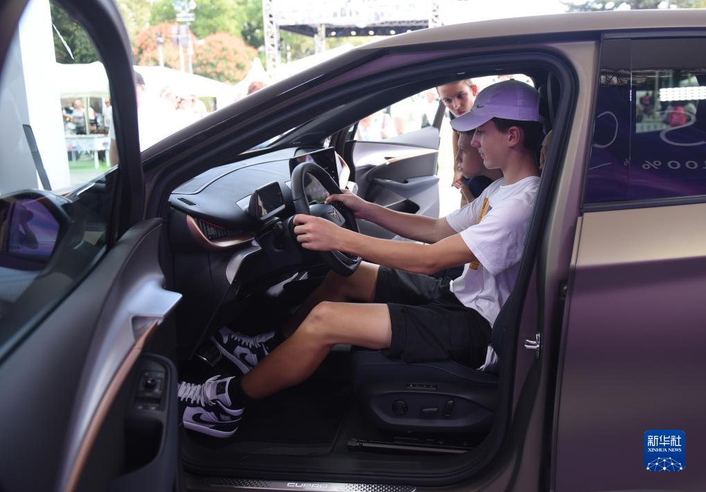 9月13日,觀眾在奧地利維也納電動汽車日活動現場體驗一輛電動車。