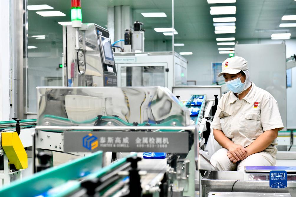 9月12日,在濱州中裕食品有限公司掛麵生産車間,工作人員在流水線上值守。