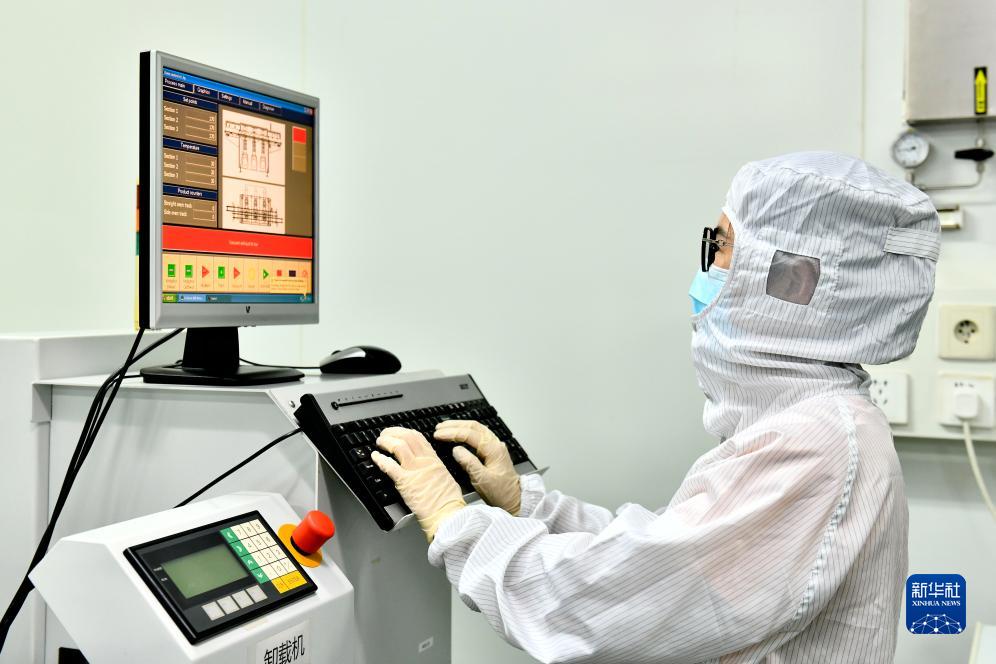 9月13日,在山東昊潤自動化技術有限公司壓力傳感器生産車間,工作人員在設備前值守。