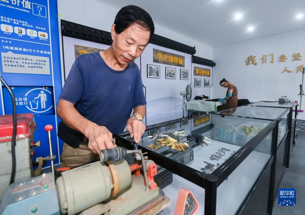 9月14日,商戶黃賢德在龍泉街道的社區服務便民小店內為居民配鑰匙。新華社記者 徐昱 攝