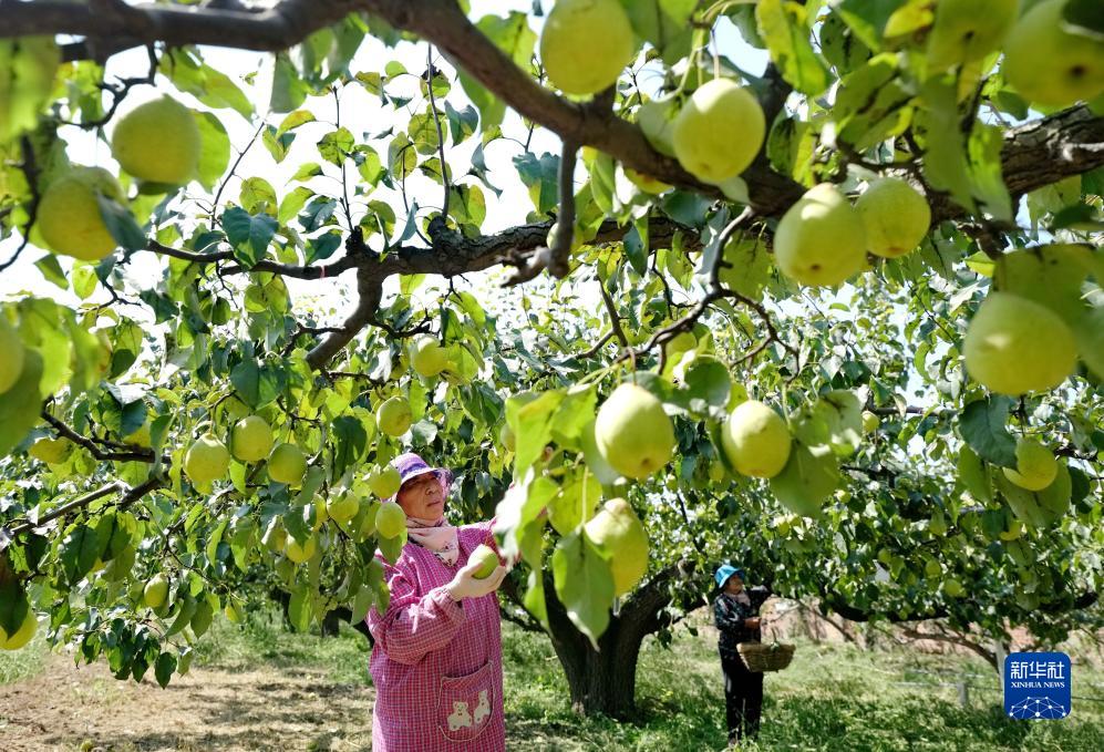 9月14日,河北省晉州市馬於鎮北辛莊村的農民在果園摘梨。