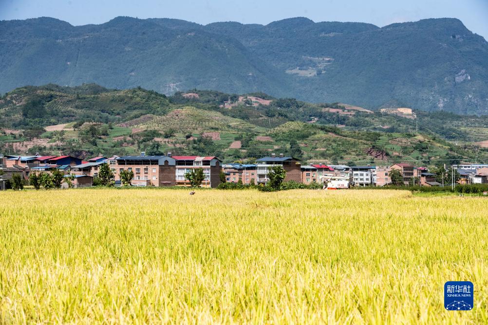 金秋時節,重慶市巫山縣廟宇鎮稻穀陸續進入成熟收割期,稻農們搶抓晴好天氣,收割水稻。