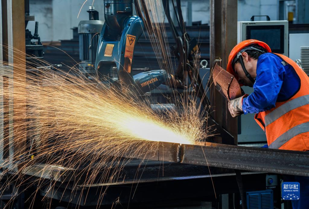 9月14日,工人在渝湘高鐵重慶至黔江段站前3標智能化鋼構廠作業。