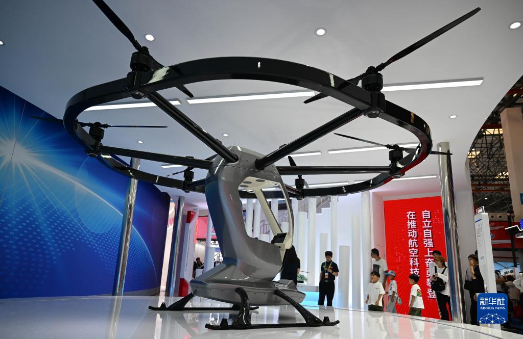 9月14日,參展人員在第六屆中國天津國際直升機博覽會會場參觀AR-300(旋戈-300)飛行器。