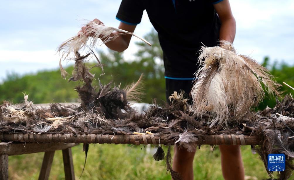 9月13日,吳錦彪篩選用來銷售的鴕鳥羽毛。新華社記者 胡晨歡 攝