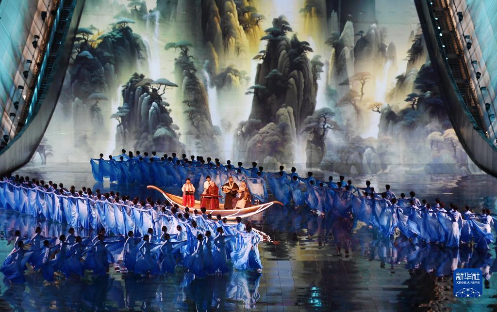 9月14日,演職人員在北京文化論壇文藝晚會上表演器樂演奏《同舟》。
