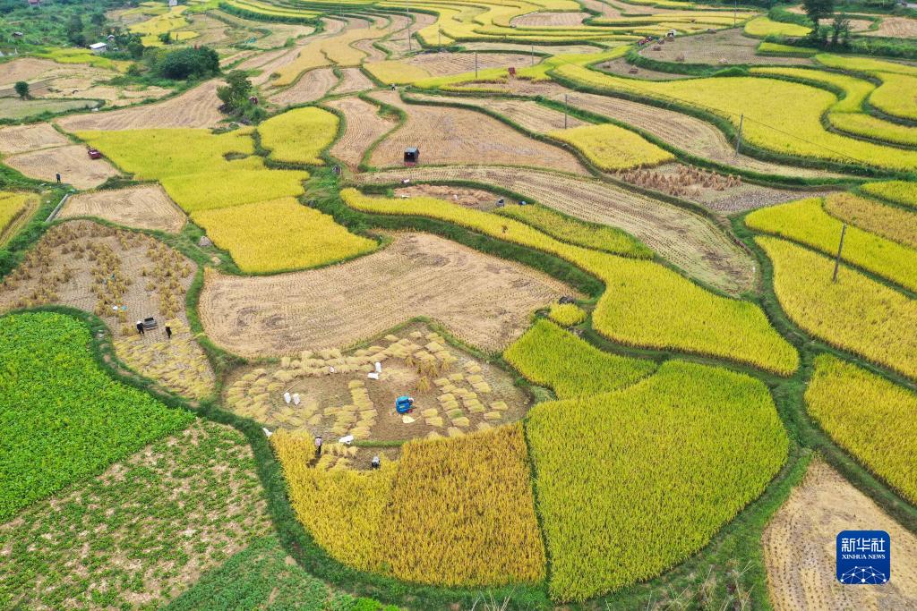 金秋時節,各地農民搶抓晴好天氣忙收穫,田間地頭一派繁忙景象。