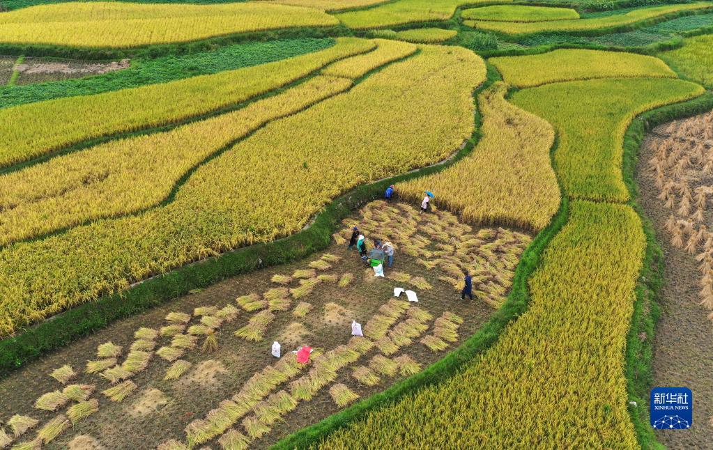金秋時節,各地農民搶抓晴好天氣忙收穫,田間地頭一派繁忙景象。
