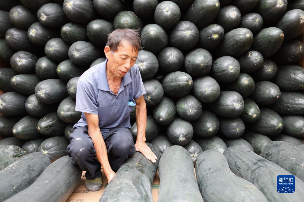 9月13日,村民在貴州省黔東南苗族侗族自治州施秉縣城關鎮白塘村將收穫的冬瓜裝車,準備供應市場。
