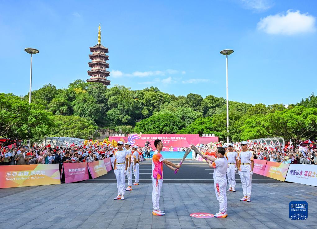 當日,杭州亞運會火炬在浙江省溫州傳遞。