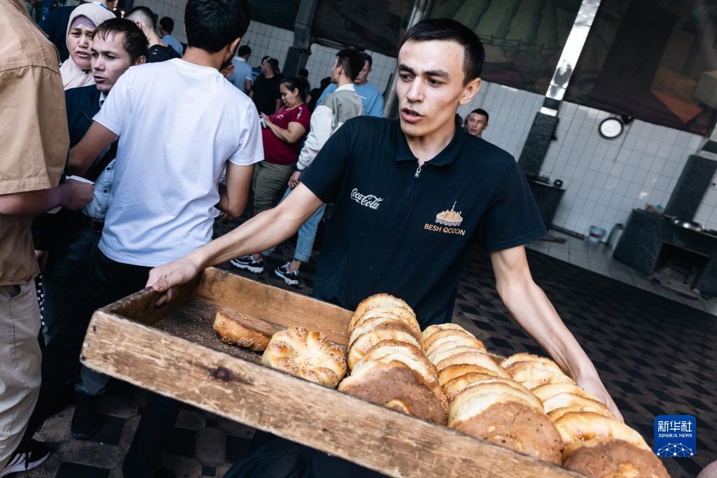 9月14日,在烏茲別克斯坦首都塔什幹,工作人員運送麵包。
