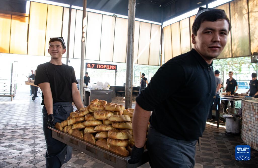 9月13日,在烏茲別克斯坦首都塔什幹,工作人員運送麵包。