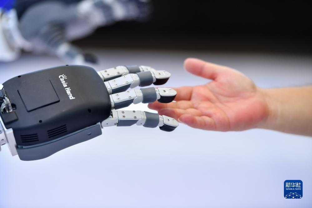9月15日,參觀者在2023世界計算大會專題展上和服務機器人互動。