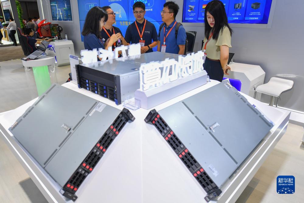 9月15日,參觀者在2023世界計算大會專題展上了解AI服務器。