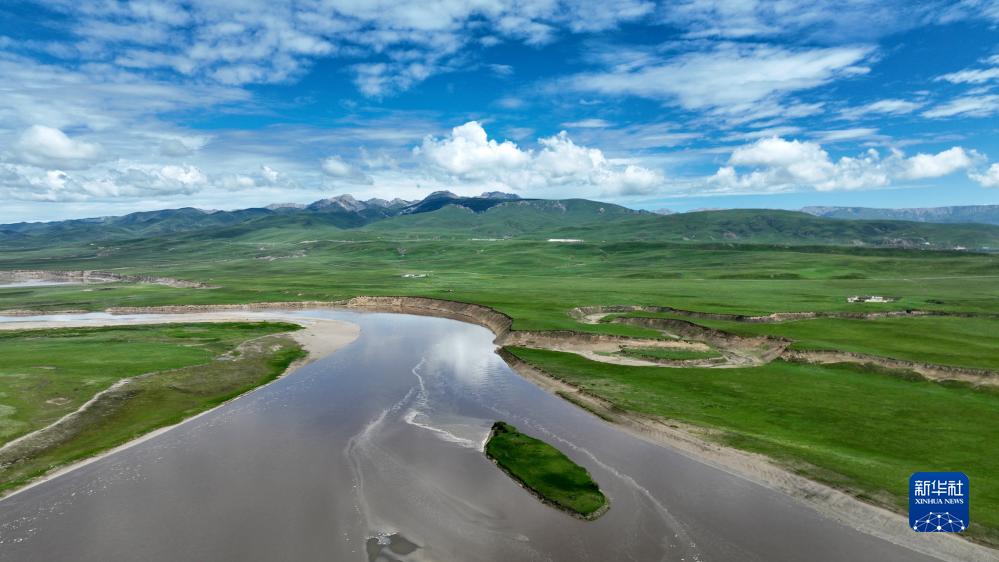 黃河流經甘南藏族自治州瑪曲縣境內(7月6日攝,無人機照片)。